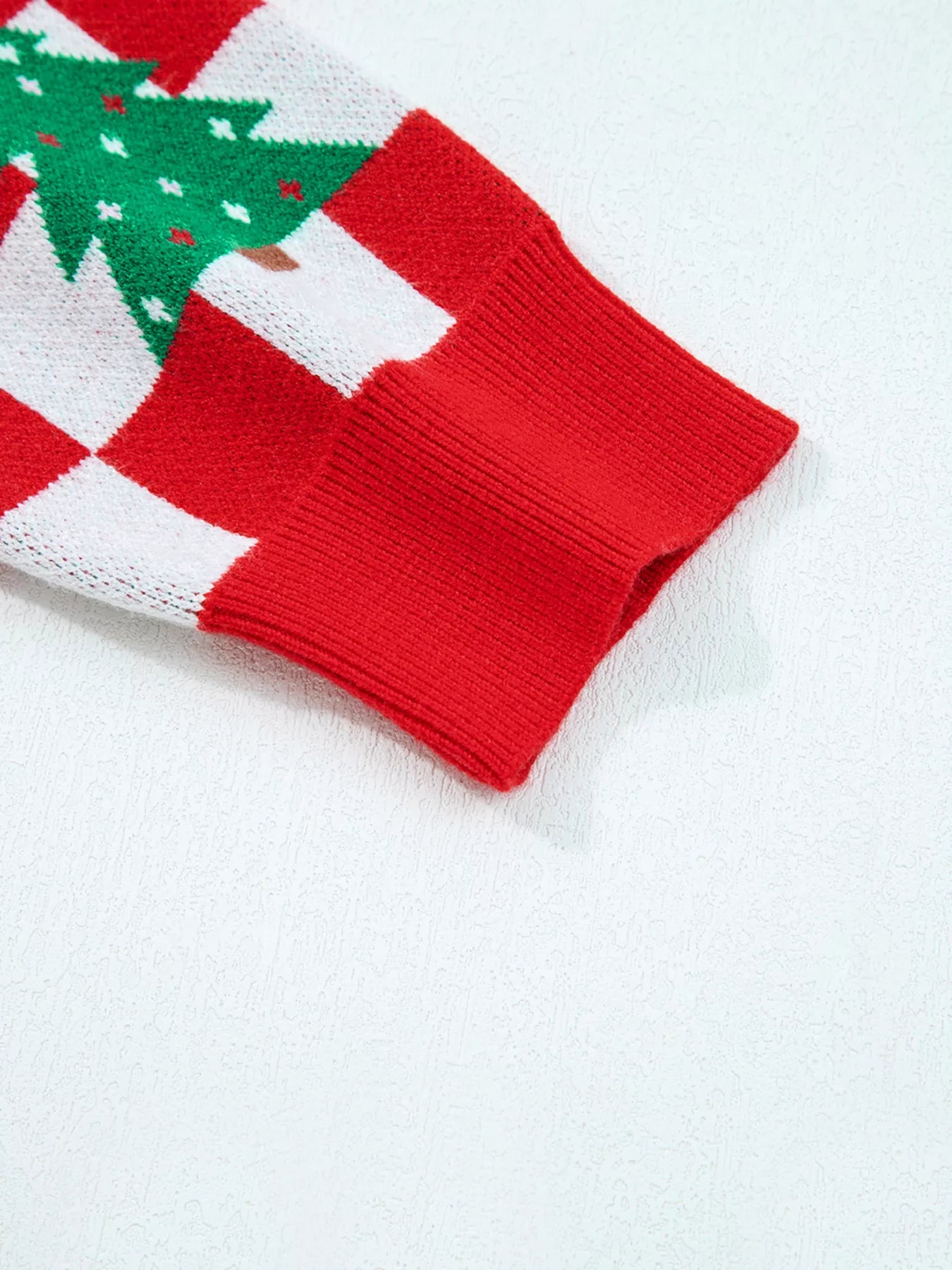 Christmas Tree Pattern Checkered Button V Neck Cardigan