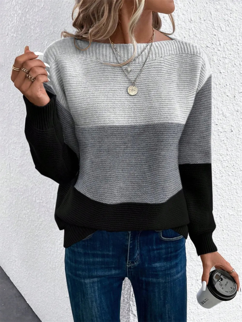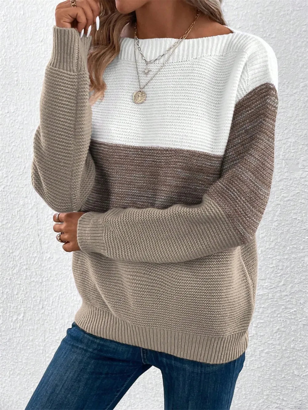 Color Block Drop Shoulder Long Sleeve Sweater
