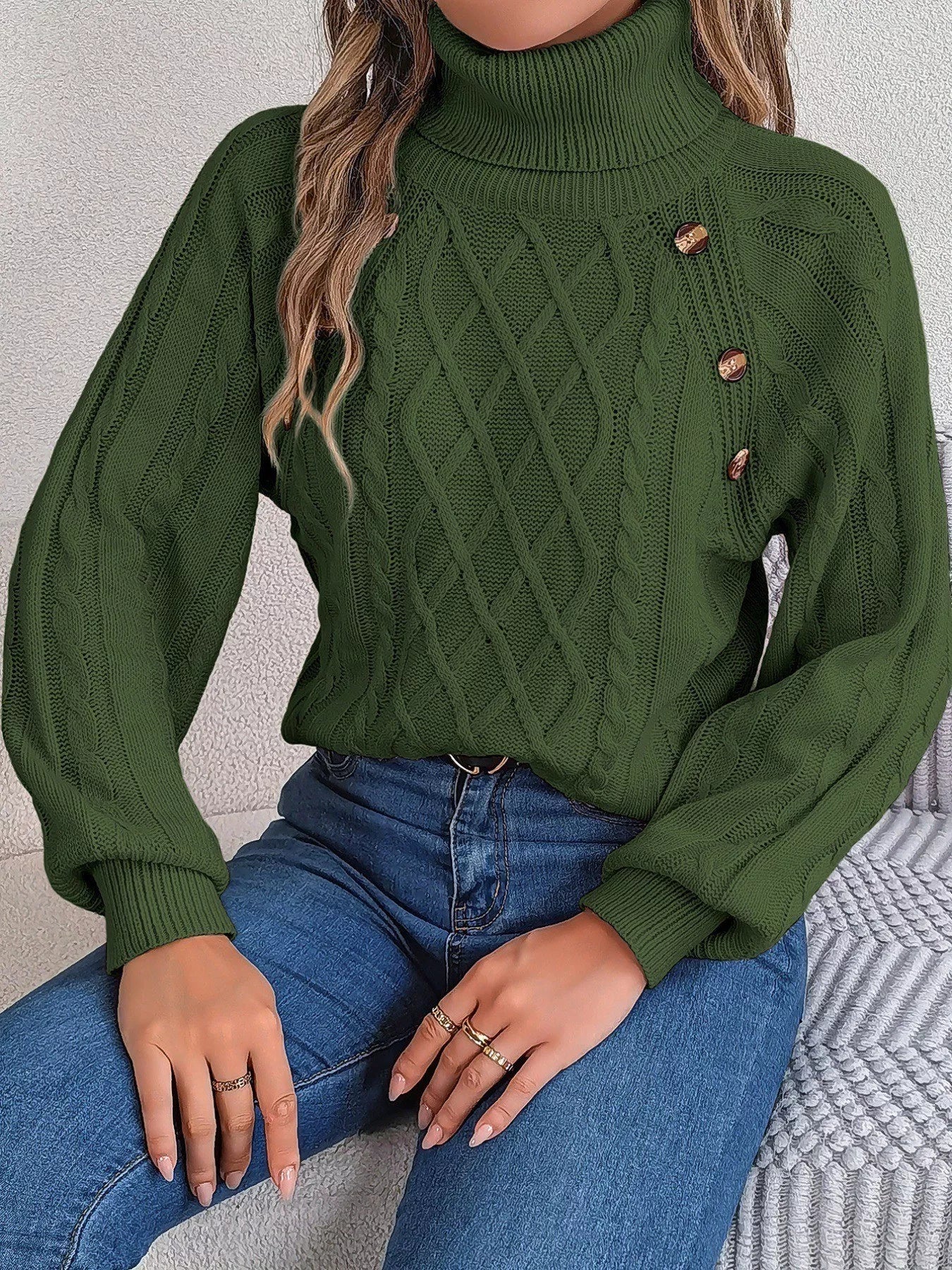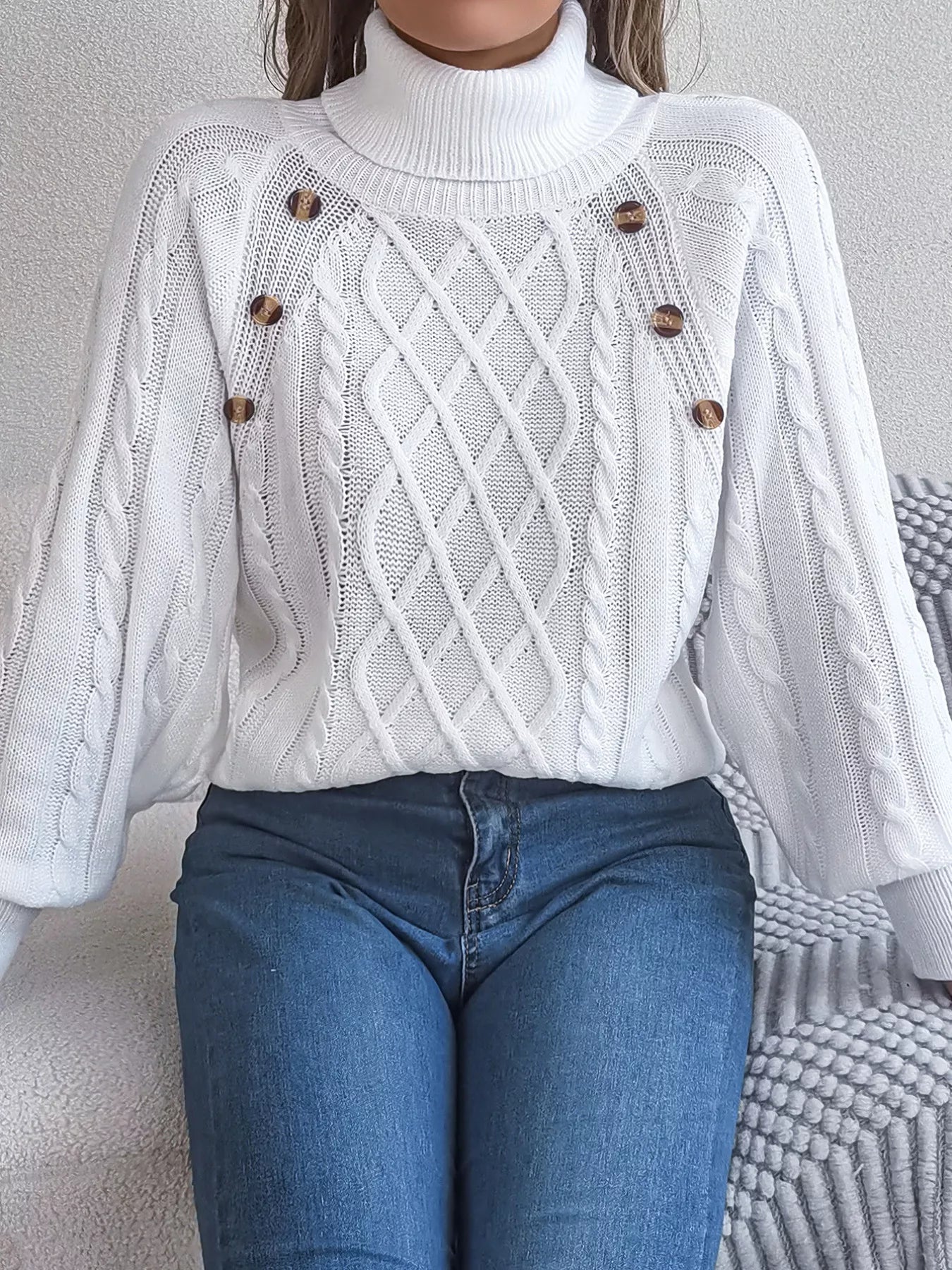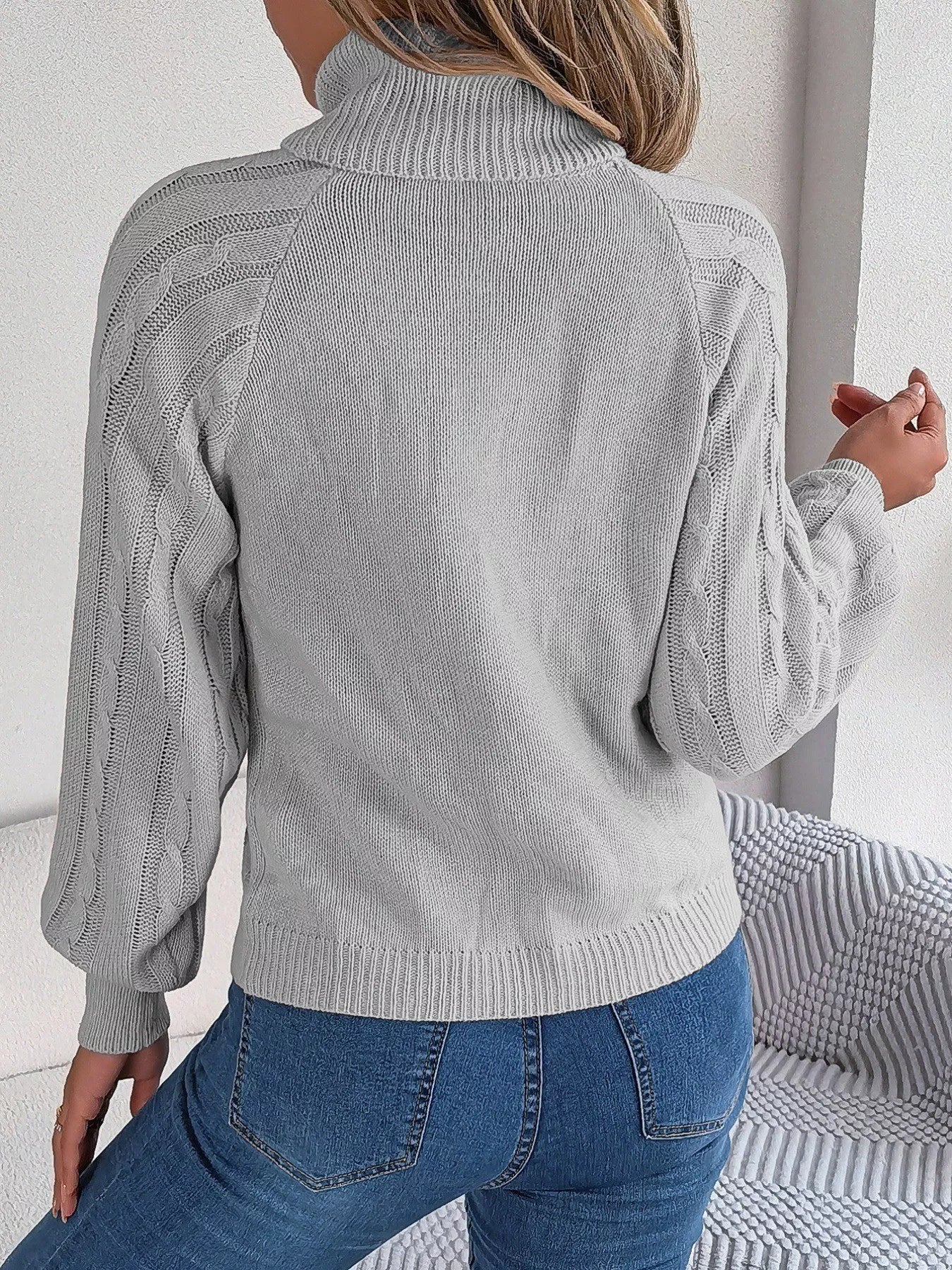 Cable Knit Turtleneck Long Sleeve Sweater