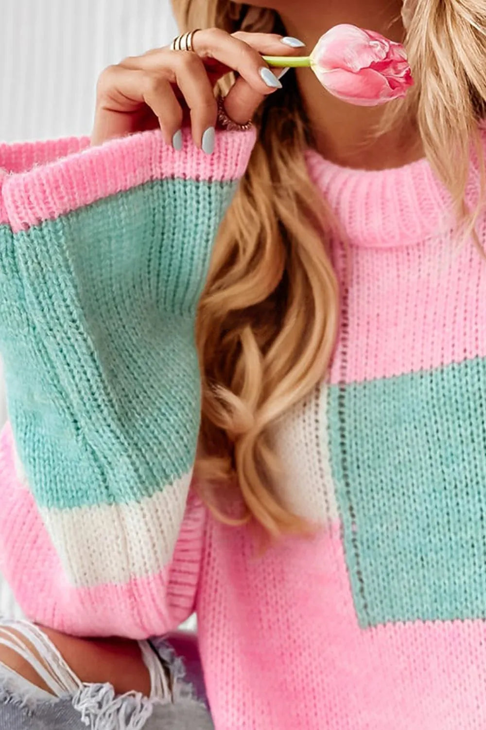 Color Block Round Neck Drop Shoulder Sweater