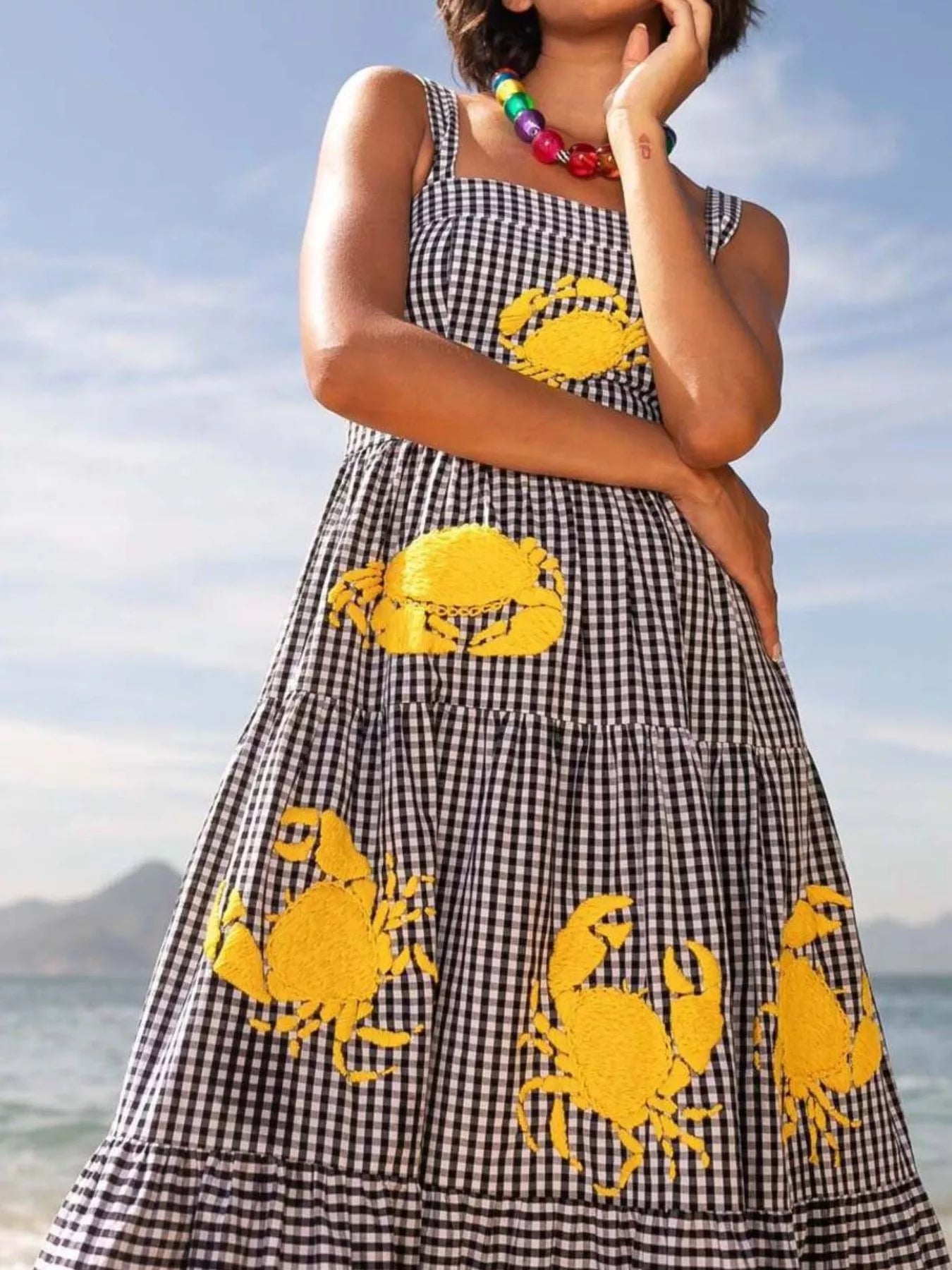 Embroidered Square Neck Tiered Maxi Cami Dress
