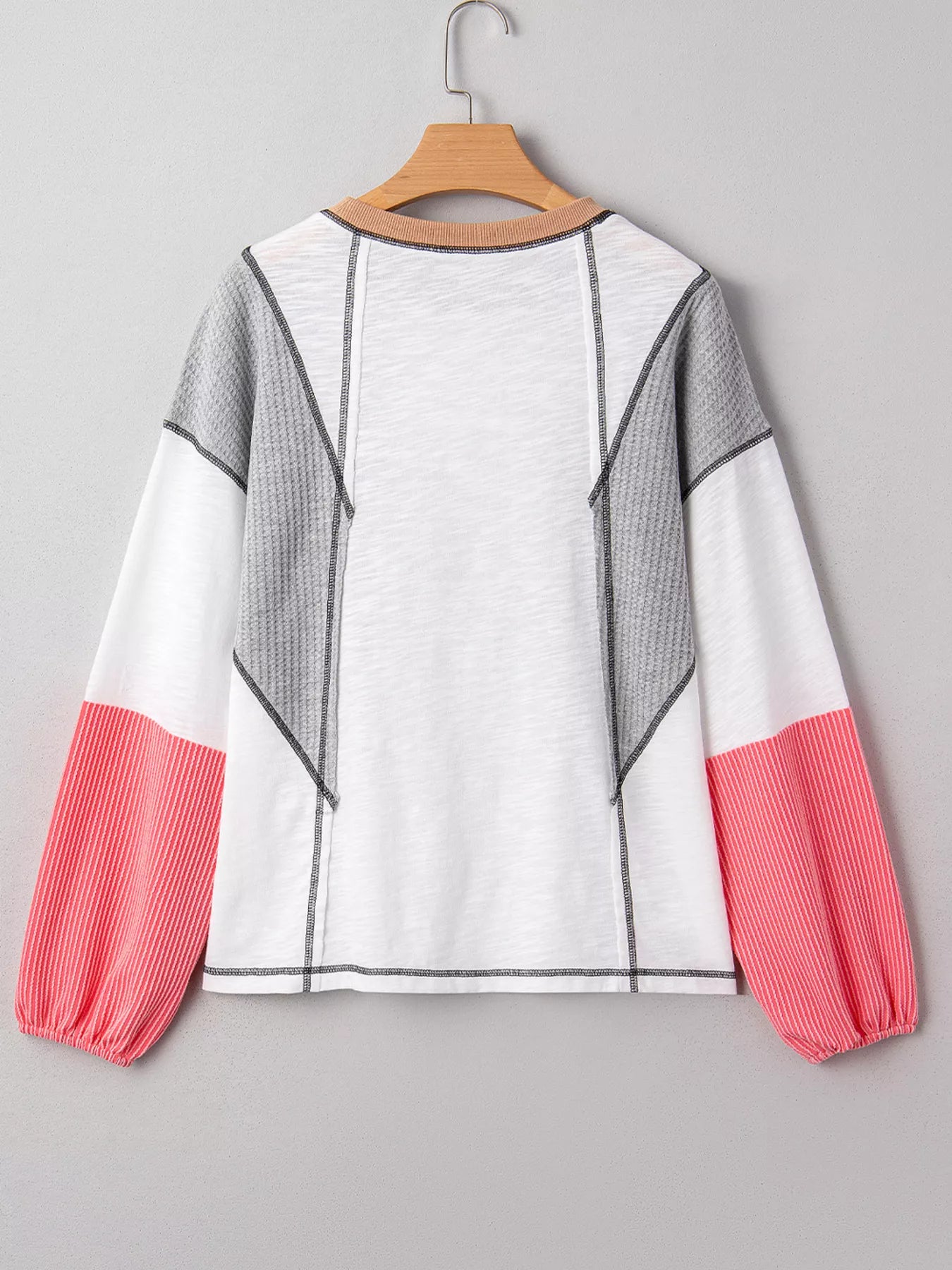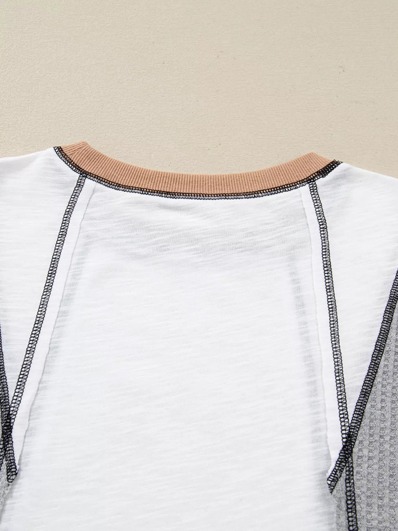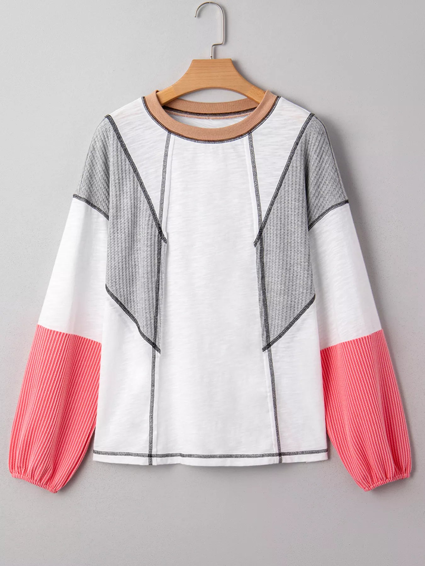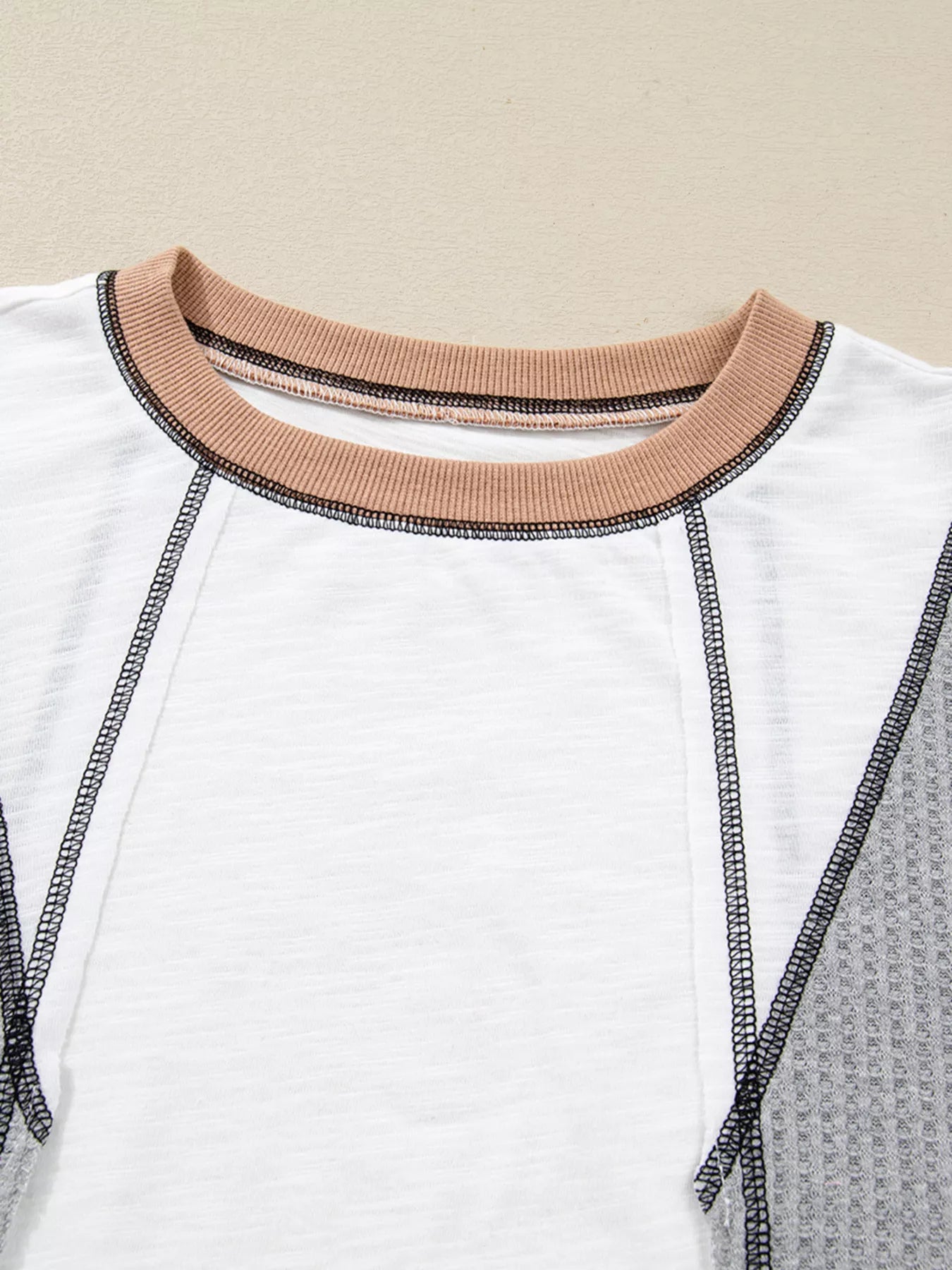 Color Block Textured Knit Patchwork Casual Top