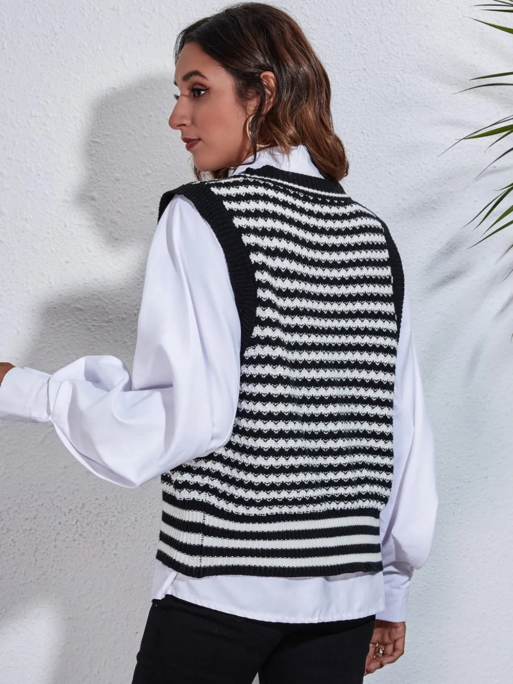 Striped Button Up V-Neck Sweater Vest