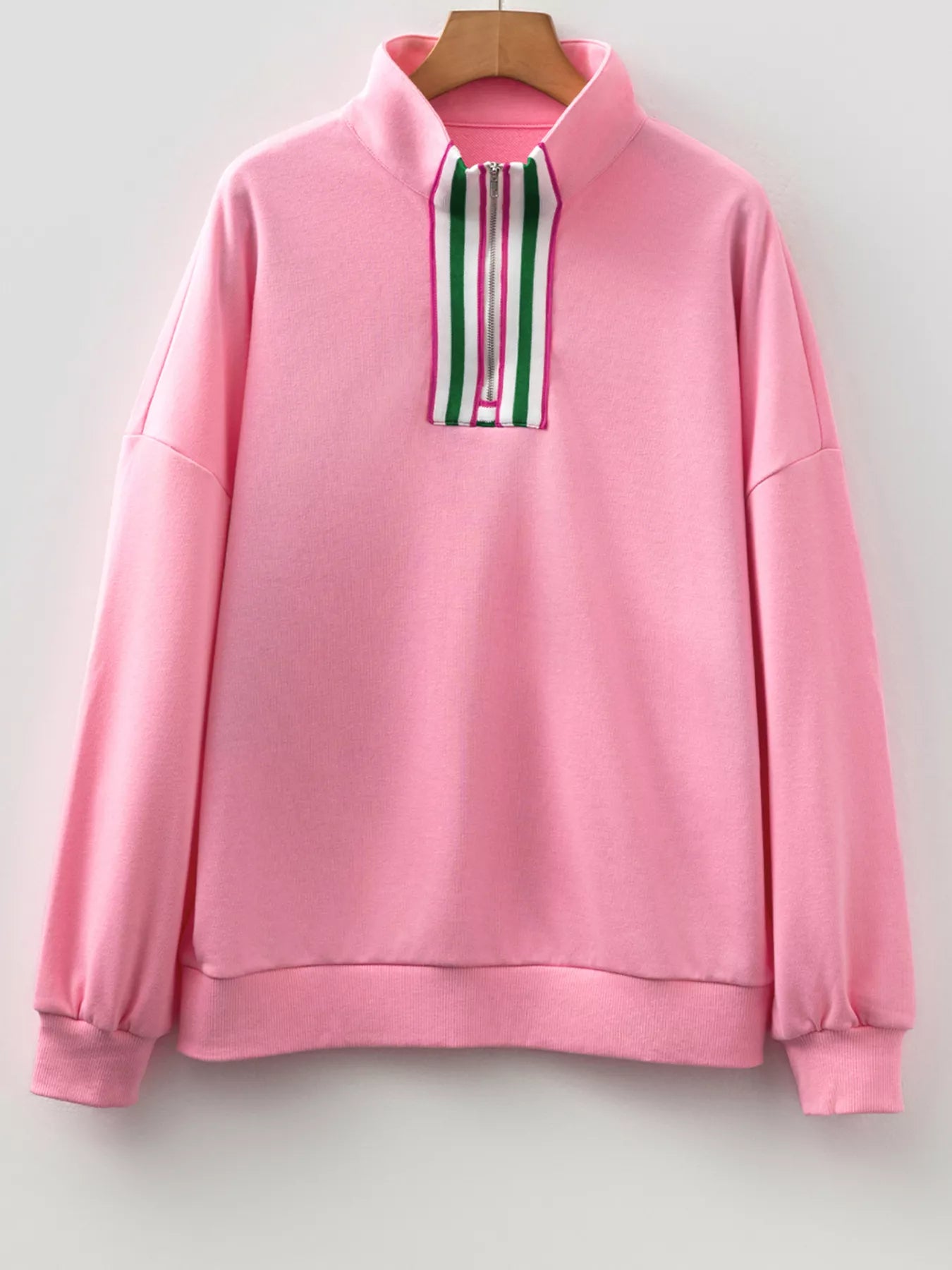 Contrast Striped Patchwork Zip Collar Sweatshirt