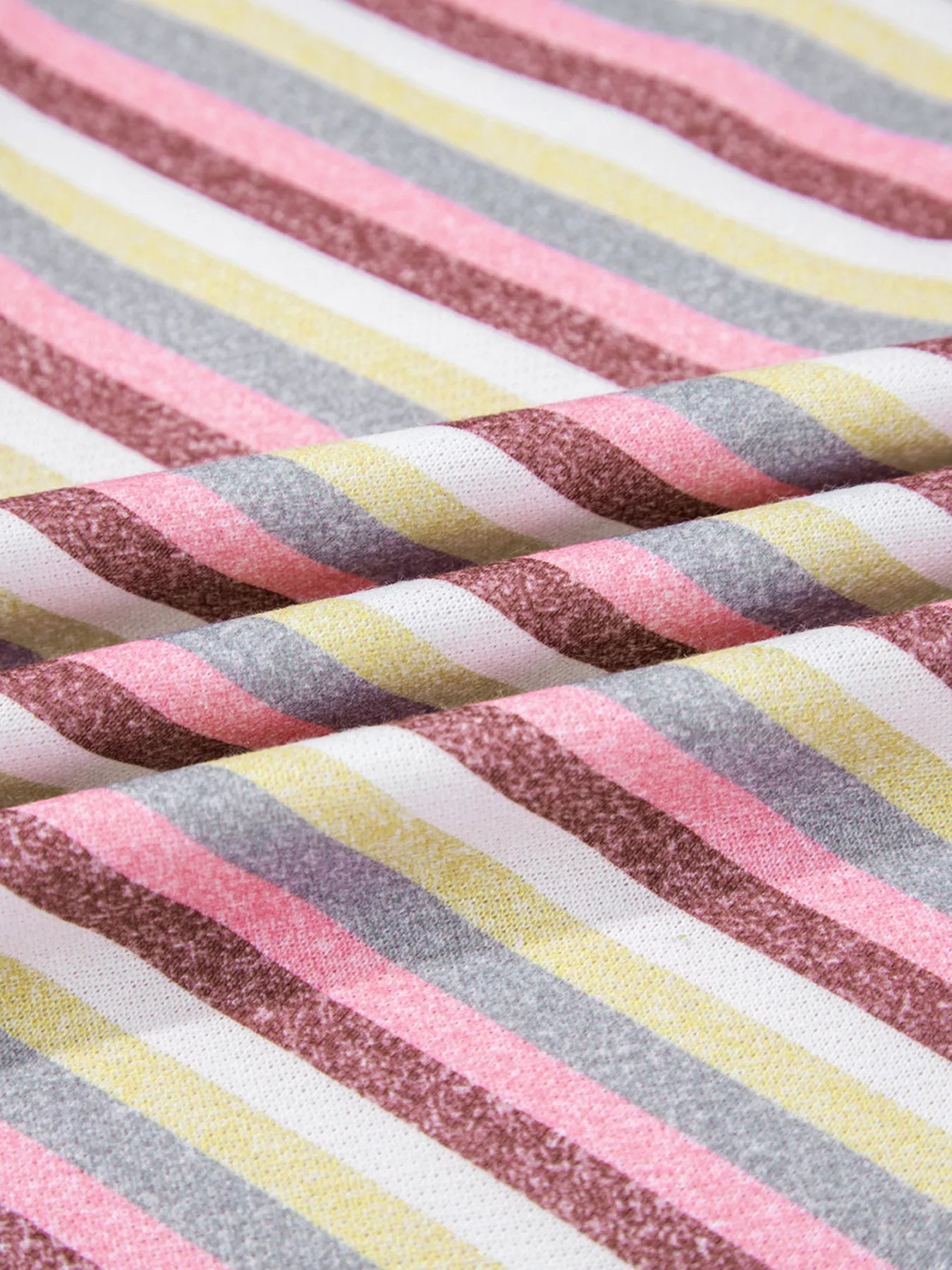 Exposed Seam Color Block Striped Patchwork Loose Henley Sweatshirt