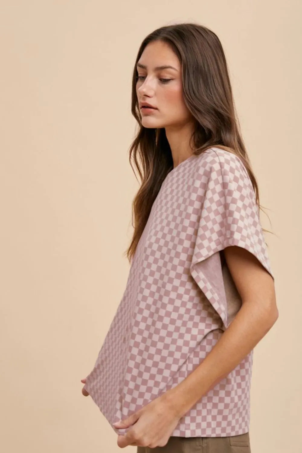 Annie Wear Checkered Round Neck Short Sleeve T-Shirt