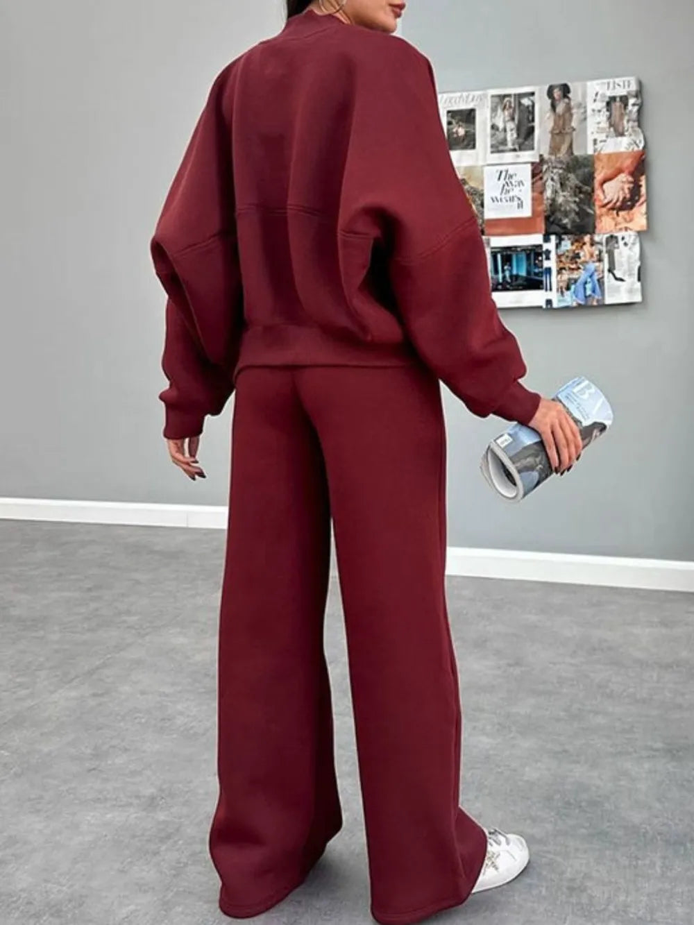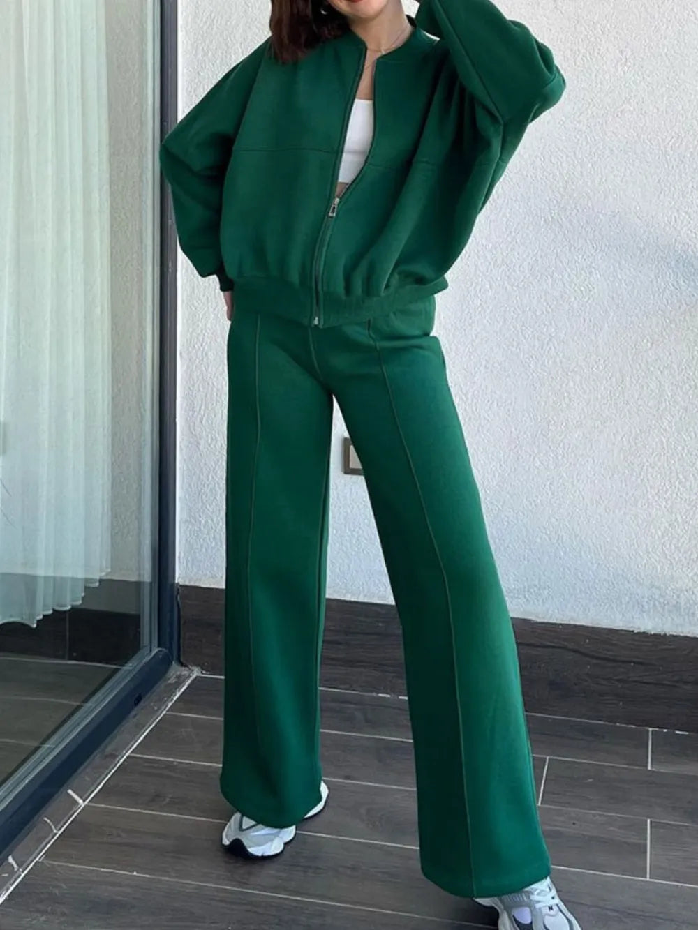 Baseball Collar Zip Up Top and Drawstring Paants Set