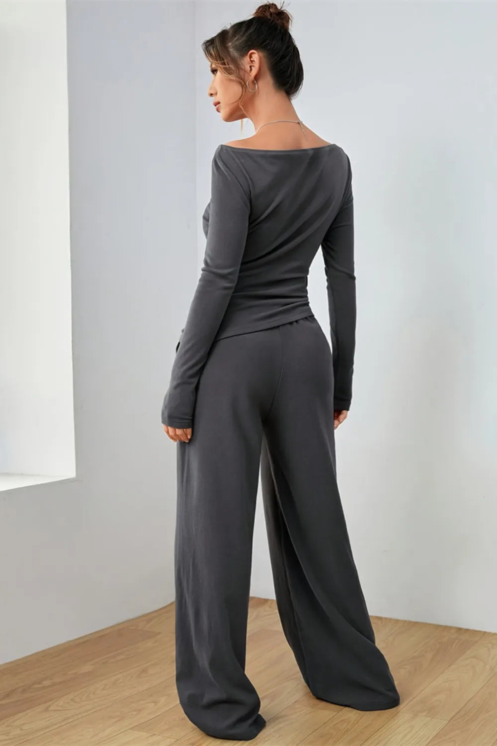 Boat Neck Long Sleeve Top and Pants Set
