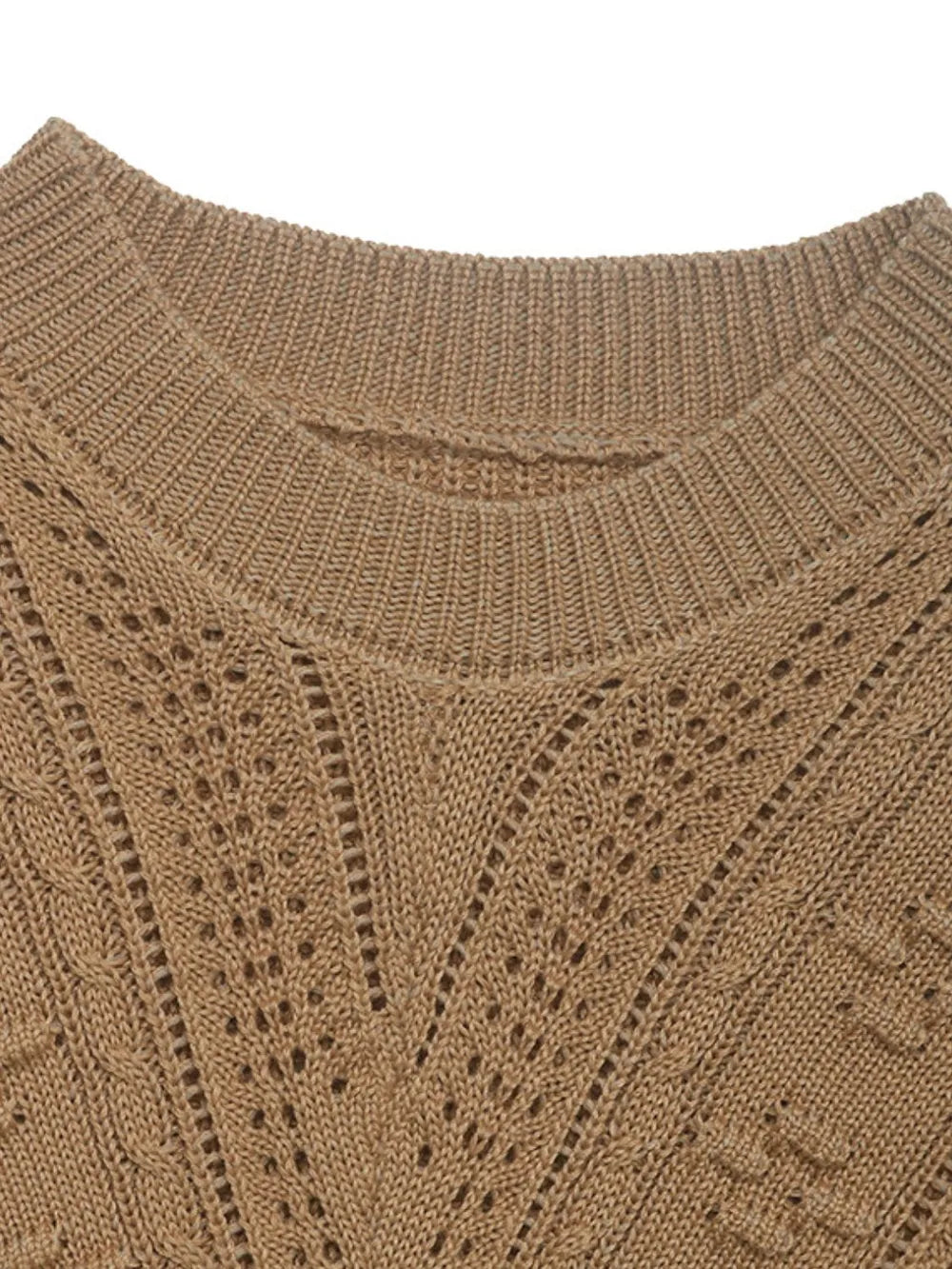 Perfee Openwork Round Neck Long Sleeve Sweater