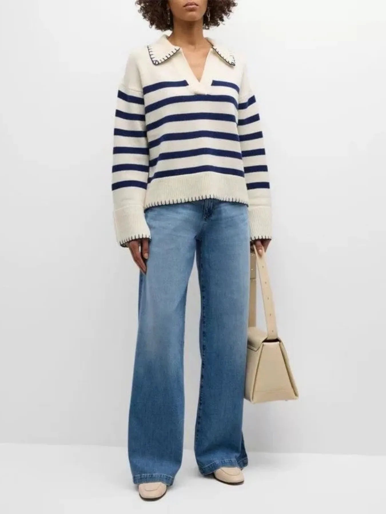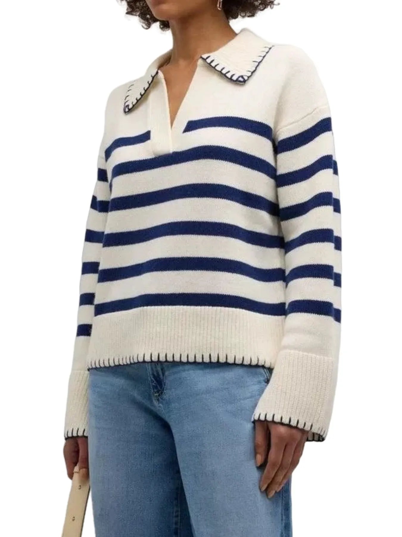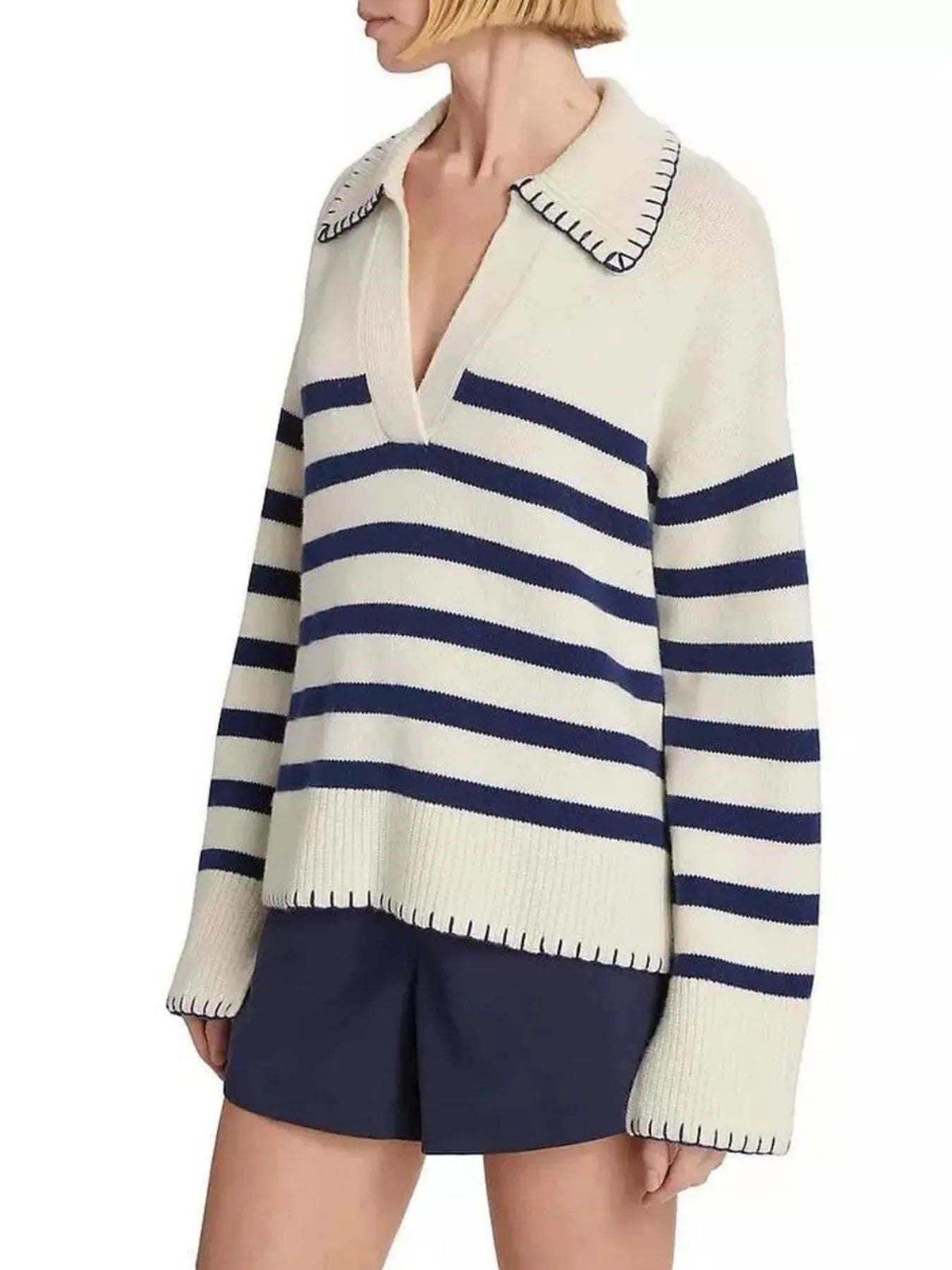 Striped Johnny Collar Sweater